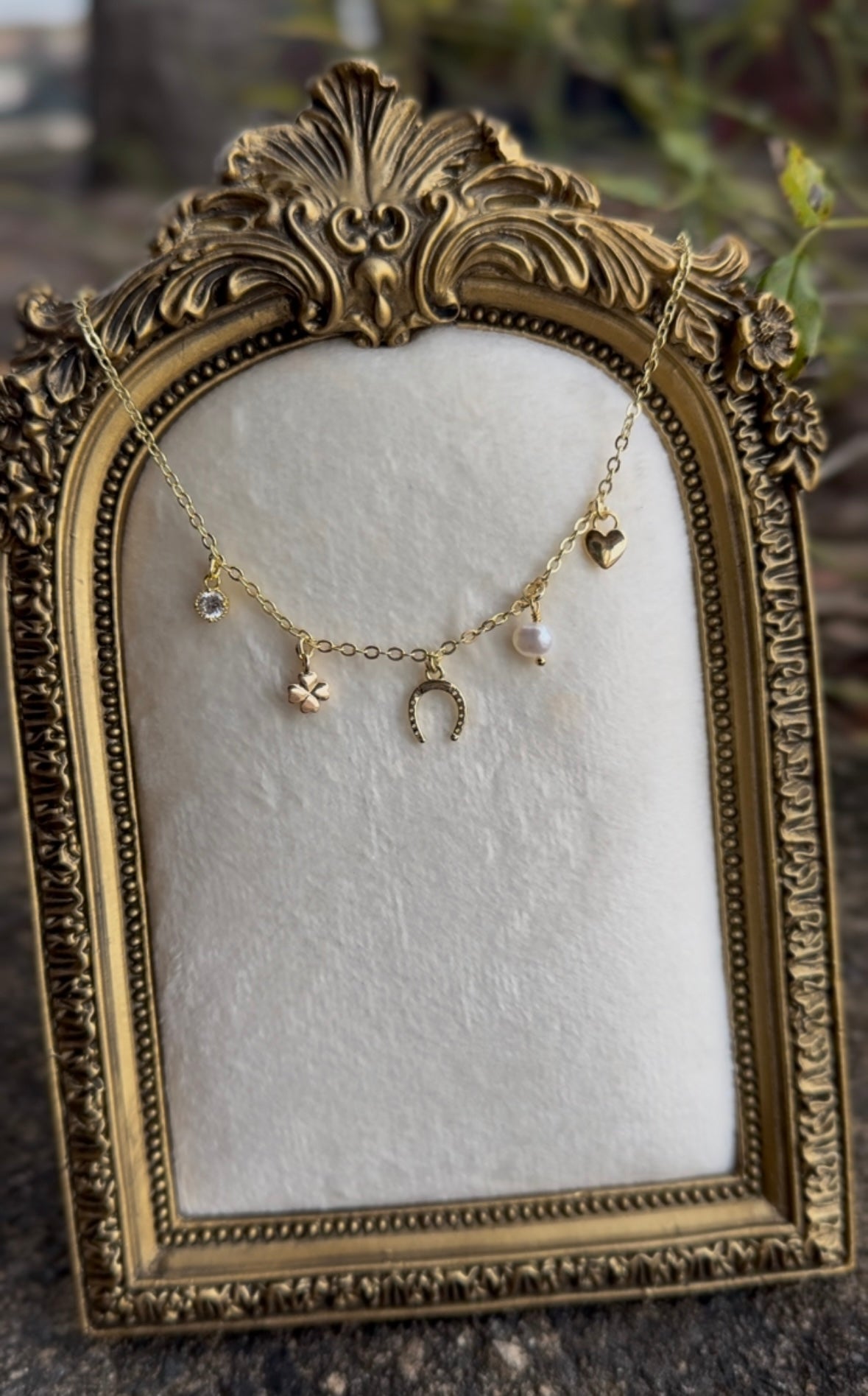 This dainty five-charm design captures that feeling. Soft. Balanced. Refined. Every element is selected to reflect the emotional heart of the hunter ring: patience, precision, and deep, intuitive partnership with your horse.